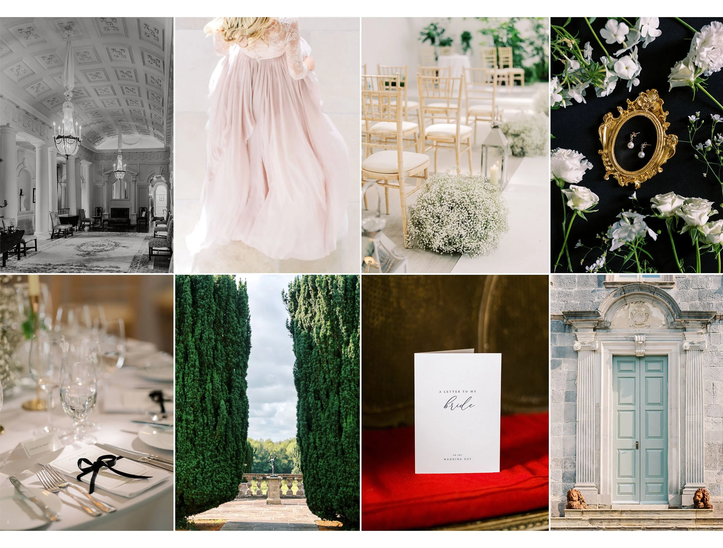 Every wedding I’ve photographed at Gloster House, Offaly has had its own personality and style. Some couples embrace soft, romantic colour palettes and floral-filled styling, while others lean into a more modern, editorial aesthetic. The versatility of the venue allows each wedding to feel personal and entirely unique.